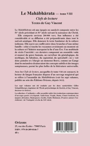 Le Mahabharata est une épopée en sanskrit composée entre les IVe siècle précédant et IVe siècle suivant la naissance du Christ. Ses récits composent un ensemble vaste et nuancé du genre humain, au carrefour du généalogique, du mythique, du fabuleux, du sapiential et du spéculatif . Avec ces Clefs de lecture, le sanskristique Guy Vincent nous offre un ouvrage magistral qui se réfère à l'ensemble du Mahabharata (sept volumes publiés par les Éditions Orizons, depuis 2013).