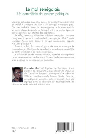 Dans les échanges avec des jeunes, on entend très souvent dire en wolof "Senegal du dem" (le Sénégal n'avancera pas). Cet aveu traduit le niveau de découragement de la jeunesse vis-à-vis de la classe dirigeante du Sénégal. Beaucoup d'hommes politiques sénégalais inspirent arrogance, indécence, malhonnêteté, démagogie, déni à cette jeunesse. Il convient d'agir et de faire en sorte que la donne change afin de promouvoir une vie politique de développement endogène.