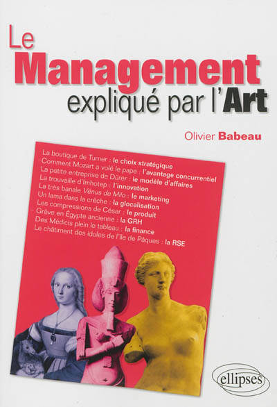 Voici donc un « cours » de management pas comme les autres, dans lequel tous les exemples sont tirés de l’histoire de l’art. Au fil de ce parcours, le lecteur croisera tour à tour Ramsès II et Akhénaton, Dürer et Le Caravage, Léonard de Vinci et Botticelli, Manet et Toulouse-Lautrec, César et Andy Warhol ; il voyagera des lagunes de Venise à la Vallée des Rois, dans l’Empire perse, en Inde et jusqu’à l’île de Pâques. Et il aura surtout découvert et assimilé sans peine les principales notions de la gestion : avantage concurrentiel, diagnostic stratégique, facteur-clé de succès, etc.