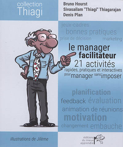 Ce livre rassemble 21 activités interactives, inventées par Sivasailam « Thiagi » Thiagarajan, permettant à un manager de passer d'une posture verticale de management à un comportement moins hiérarchique, en utilisant l'intelligence collective de ses collaborateurs. Faciles à mettre en œuvre tout en étant d'une grande efficacité, ces activités peuvent facilement être adaptées au contexte et aux contraintes du manager. De très nombreux thèmes peuvent être abordés à travers ces activités : planification, benchmarking, gestion du changement, gestion de conflits, prise de décision, design thinking, conduite de réunions, motivation, résolution de problèmes, élaboration de politiques, amélioration de processus et de produits, gestion de projet, amélioration de la qualité, partage de bonnes pratiques et bien d'autres.