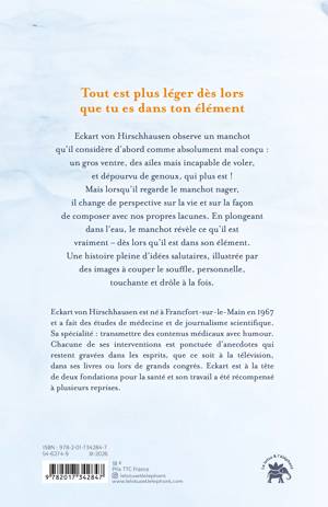 Eckart von Hirschhausen observe un manchot qu’il considère d’abord comme absolument mal conçu : un gros ventre, des ailes mais incapable de voler, et dépourvu de genoux, qui plus est ! Mais lorsqu’il regarde le manchot nager, il change de perspective sur la vie et sur la façon de composer avec nos propres lacunes. En plongeant dans l’eau, le manchot révèle ce qu’il est vraiment – dès lors qu’il est dans son élément. Une histoire pleine d’idées salutaires, illustrée par des images à couper le souffle, personnelle, touchante et drôle à la fois.