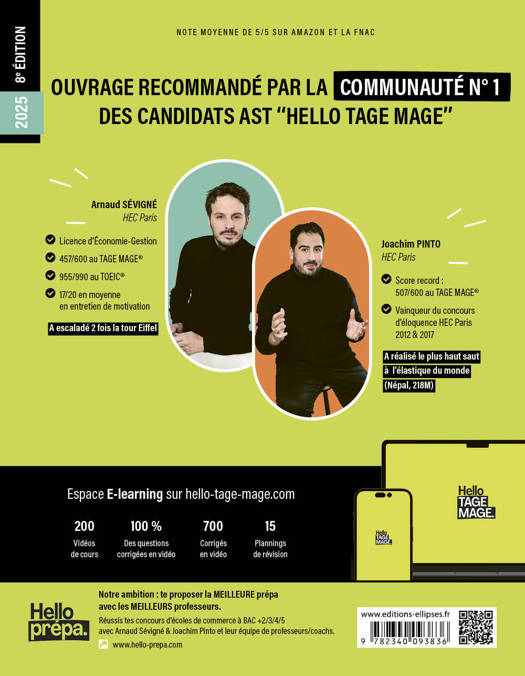 Cet ouvrage de référence écrit par Joachim PINTO (HEC Paris et score record de 507/600) et Arnaud SÉVIGNÉ (HEC Paris) vous propose une préparation complète au TAGE MAGE (de A à Z).