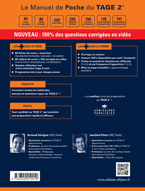 Livre OFFICIEL de la prépa leader ADMISSIONS PARALLÈLES, cet ouvrage de référence écrit par Joachim PINTO (HEC Paris – Score record de 178/210) et Arnaud SÉVIGNÉ (HEC Paris) vous propose une préparation complète au TAGE 2.