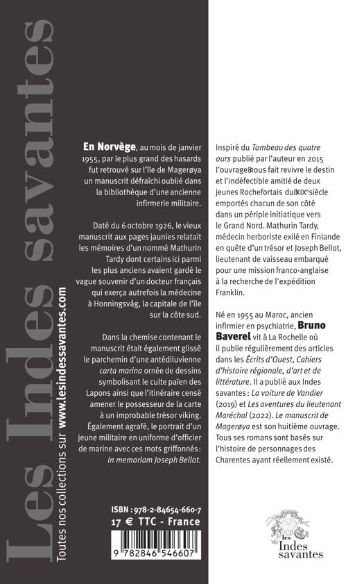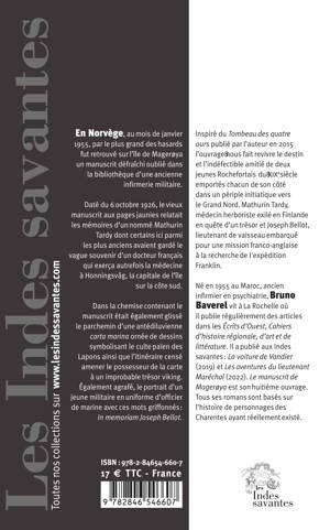 En Norvège, au mois de janvier 1955, par le plus grand des hasards fut retrouvé sur l’île de Magerøya un manuscrit défraîchi oublié dans la bibliothèque d’une ancienne infirmerie militaire. Daté du 6 octobre 1926, sur les pages jaunies du vieux manuscrit étaient relatées les mémoires d’un nommé Mathurin Tardy dont certains ici parmi les plus anciens avaient gardé le vague souvenir d’un docteur français qui exerça autrefois la médecine à Honningsvåg, la capitale de l’île sur la côte sud.