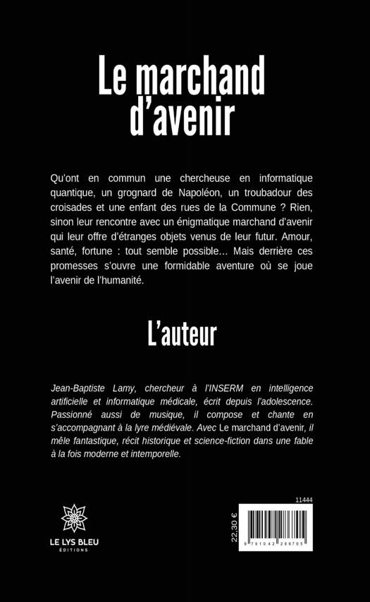 Qu'ont en commun une chercheuse en informatique quantique, un grognard de Napoléon, un troubadour des croisades et une enfant des rues de la Commune ? Rien, sinon leur rencontre avec un énigmatique marchand d'avenir qui leur offre d'étranges objets venus de leur futur. Amour, santé, fortune : tout semble possible... Mais derrière ces promesses s'ouvre une formidable aventure où se joue l'avenir de l'humanité.