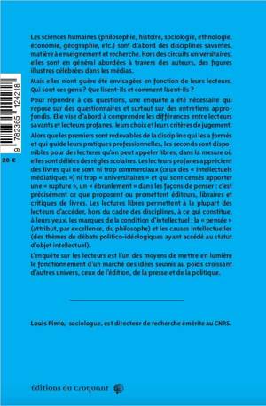 Le marché des idées Les sciences humaines et leurs lecteurs Louis Pinto Les sciences humaines (philosophie, histoire, sociologie, ethnologie, économie, géographie, etc.) sont d’abord des disciplines savantes, matière à enseignement et recherche. Hors des circuits universitaires, elles sont en général abordées à travers des auteurs, des figures illustres célébrées dans les médias. Mais elles n’ont guère été envisagées en fonction de leurs lecteurs. Qui sont ces gens ? Que lisent-ils et comment lisent-ils ? Pour répondre à ces questions, une enquête a été nécessaire qui repose sur des questionnaires et surtout sur des entretiens approfondis. Elle vise d’abord à comprendre les différences entre lecteurs savants et lecteurs profanes, leurs choix et leurs critères de jugement. Alors que les premiers sont redevables de la discipline qui les a formés et qui guide leurs pratiques professionnelles, les seconds sont disponibles pour des lectures qu’on peut appeler libres, dans la mesure où elles sont déliées des règles scolaires. Les lecteurs profanes apprécient des livres qui ne sont ni trop commerciaux (ceux des « intellectuels médiatiques ») ni trop « universitaires » et qui sont censés apporter une « rupture », un « ébranlement » dans les façons de penser : c’est précisément ce que proposent ou promettent éditeurs, libraires et critiques de livres. Les lectures libres permettent à la plupart des lecteurs d’accéder, hors du cadre des disciplines, à ce qui constitue, à leurs yeux, les marques de la condition d’intellectuel : la « pensée » (attribut, par excellence, du philosophe) et les causes intellectuelles (des thèmes de débats politico-idéologiques ayant accédé au statut d’objet intellectuel). L’enquête sur les lecteurs est l’un des moyens de mettre en lumière le fonctionnement d’un marché des idées soumis au poids croissant d’autres univers, ceux de l’édition, de la presse et de la politique.