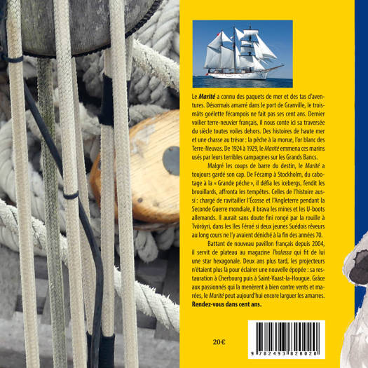 Le Marité a connu des paquets de mer et des tas d'aventures. Désormais amarré dans le port de Granville, le trois-mâts goélette fécampois ne fait pas ses cent ans. Dernier voilier terre-neuvier français, il nous conte ici sa traversée du siècle toutes voiles dehors. Des histoires de haute mer et une chasse au trésor: la pêche à la morue, l'or blanc des terre-neuvas. De 1924 à 1929, le Marité emmena ces marins usés par leurs terribles campagnes sur les Grands Bancs. Malgré les coups de barre du destin, le Marité a toujours gardé son cap. De Fécamp à Stockholm, du cabotage à la «grande pêche», il défia les icebergs, fendit les brouillards, affronta les tempêtes. Celles de l'histoire aussi: chargé de ravitailler l'Écosse et l'Angleterre pendant la Seconde Guerre mondiale, il brava les mines et les U-boots allemands. Il aurait sans doute fini rongé par la rouille à Tvöröyri, dans les îles Féroé si deux jeunes Suédois rêveurs au long cours ne l'y avaient déniché à la fin des années 70. Battant de nouveau pavillon français depuis 2004, il servit de plateau au magazine Thalassa qui fit de lui une star hexagonale. Deux ans plus tard, les projecteurs n'étaient plus là pour éclairer une nouvelle épopée: sa restauration à Cherbourg puis à Saint-Vaast-la-Hougue. Grâce aux passionnés qui la menèrent à bien contre vents et marées, le Marité peut aujourd'hui encore larguer les amarres. Rendez-vous dans cent ans.