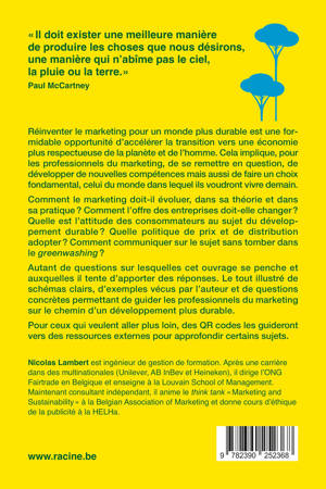 Autant de questions sur lesquelles cet ouvrage se penche et auxquelles il tente d'apporter des réponses. Le tout illustré de schémas clairs, d'exemples vécus par l'auteur et de questions concrètes permettant de guider les professionnels du marketing sur le chemin d'un développement plus durable.