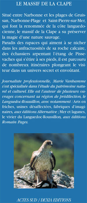«Journaliste professionnelle, Marie Vanhamme s'est spécialisée dans l'étude du patrimoine naturel et culturel. Elle est l'auteur de plusieurs ouvrages concernant sa région de prédilection, le Languedoc-Roussillon, avec notamment : Arts en friches, usines désaffectées, fabriques d'imaginaires, aux éditions Alternative ; Mer et lagunes, le vivier du Languedoc-Roussillon, aux éditions Romain Pages.»