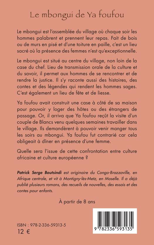 Ya foufou avait construit une case à côté de sa maison pour pouvoir y loger des hôtes ou des étrangers de passage. Or, il arriva que Ya foufou reçût la visite d'un couple de Blancs venu quelques semaines travailler dans le village. Ils demandèrent à pouvoir venir manger tous les soirs au mbongui. Ya foufou fut contrarié car cela obligeait à dîner en présence d'une femme.