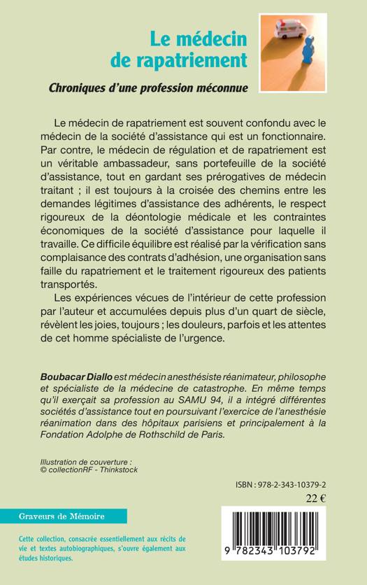 Le médecin de régulation et de rapatriement est un véritable ambassadeur, sans portefeuille de la société d'assistance, tout en gardant ses prérogatives de médecin traitant. Il est toujours à la croisée des chemins entre les demandes d'assistance des adhérents et les contraintes économiques de la société d'assistance pour laquelle il travaille. Cet ouvrage relate les expériences vécues de l'intérieur de cette profession par l'auteur et accumulées depuis plus d'un quart de siècle. Celles-ci révèlent les joies, les douleurs et les attentes de cet homme spécialiste de l'urgence.