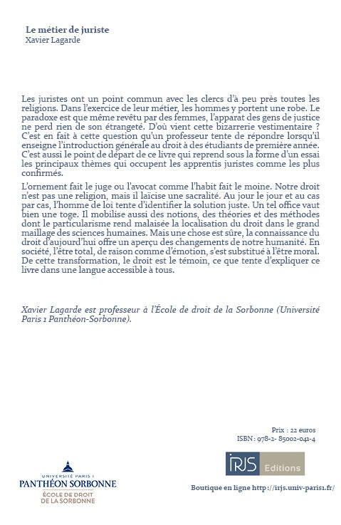 Les juristes ont un point commun avec les clercs d'à peu près toutes les religions. Dans l'exercice de leur métier, les hommes y portent une robe. Le paradoxe est que même revêtu par des femmes, l'apparat des gens de justice ne perd rien de son étrangeté. D'où vient cette bizarrerie vestimentaire ? C'est en fait à cette question qu'un professeur tente de répondre lorsqu'il enseigne l'introduction générale au droit à des étudiants de première année. C'est aussi le point de départ de ce livre qui reprend sous la forme d'un essai les principaux thèmes qui occupent les apprentis juristes comme les plus confirmés. L'ornement fait le juge ou l'avocat comme l'habit fait le moine. Notre droit n'est pas une religion, mais il laïcise une sacralité. Au jour le jour et au cas par cas, l'homme de loi tente d'identifier la solution juste. Un tel office vaut bien une toge. Il mobilise aussi des notions, des théories et des méthodes dont le particularisme rend malaisée la localisation du droit dans le grand maillage des sciences humaines. Mais une chose est sûre, la connaissance du droit d'aujourd'hui offre un aperçu des changements de notre humanité. En société, l'être total, de raison comme d'émotion, s'est substitué à l'être moral. De cette transformation, le droit est le témoin, ce que tente d'expliquer ce livre dans une langue accessible à tous.
