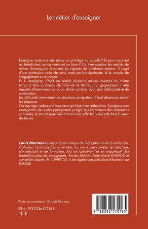 Enseigner toute une vie, est-ce un privilège ou un défi ? Et pour ceux qui Le métier d'enseigner en bénéficient, est-ce vraiment un bien ? Ce livre explore les réalités du métier d'enseignant à travers les regards de nombreux auteurs. Il s'agit d'une profession riche de sens, mais parfois épuisante, à la croisée de l'engagement et du doute. Et si enseigner, c'était en réalité plusieurs métiers exercés en même temps ? Une surcharge de rôles et de tâches, qui gagneraient à être répartis différemment au cours d'une carrière, pour plus d'efficacité et de satisfaction. Les difficultés reviennent, les situations se répètent. Il faut désormais savoir les dépasser. Cet ouvrage s'adresse à tous ceux qui font vivre l'éducation. Il propose aux enseignants des pistes pour penser et agir, aux formateurs des ressources concrètes, et aux citoyens une occasion de réfléchir à leur rôle dans l'avenir de l'école.