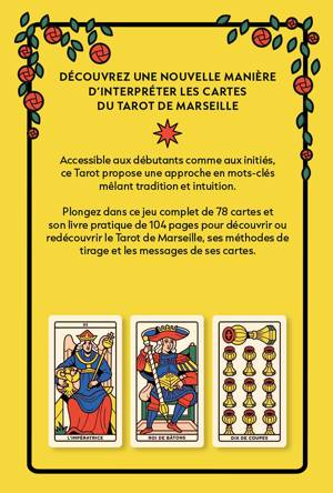 Accessible aux débutants comme aux initiés, ce Tarot propose une approche en mots-clés mêlant tradition et intuition. Plongez dans ce jeu complet de 78 cartes et son livre pratique de 104 pages pour découvrir ou redécouvrir le Tarot de Marseille, ses méthodes de tirage et les messages de ses cartes.