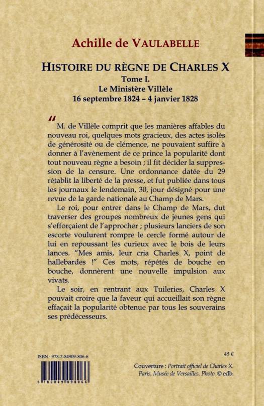 Le soir, en rentrant aux Tuileries, Charles X pouvait croire que la faveur qui accueillait son règne effaçait la popularité obtenue par tous les souverains ses prédécesseurs.