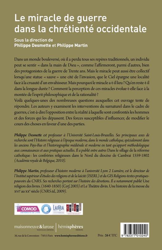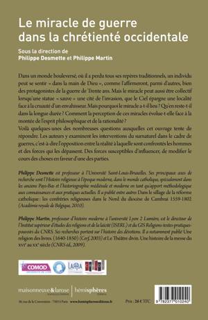 Dans un monde bouleversé, où il a perdu tous ses repères traditionnels, un individu peut se sentir « dans la main de Dieu », comme l'affirmeront, parmi d'autres, bien des protagonistes de la guerre de Trente ans. Mais le miracle peut aussi être collectif lorsqu'une statue « sauve » une cité de l'invasion, que le Ciel épargne une localité face à la cruauté d'un envahisseur. Mais pourquoi le miracle a-t-il lieu ? Qu'en reste-t-il dans la longue durée ? Comment la perception de ces miracles évolue-t-elle face à la montée de l'esprit philosophique et de la rationalité ? Voilà quelques-unes des nombreuses questions auxquelles cet ouvrage tente de répondre. Les auteurs y examinent les interventions du surnaturel dans le cadre de guerres, c'est-à-dire l'opposition entre la réalité à laquelle sont confrontés les hommes et des forces qui les dépassent. Des forces susceptibles d'influencer, de modifier le cours des choses en faveur d'une des parties.