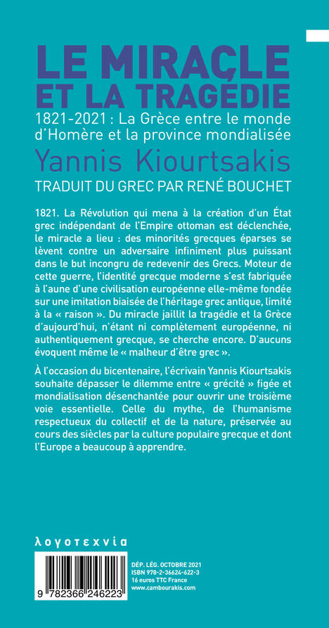 Une méditation de l'écrivain Yannis Kiourtsakis, précédemment publié aux éditions Verdier, sur la place évolutive de la Grèce dans l'Europe, du monde d'Homère à la province mondialisée, dans le cadre des 200 ans de l'indépendance grecque et de l'exposition au Louvre qui y est consacrée.