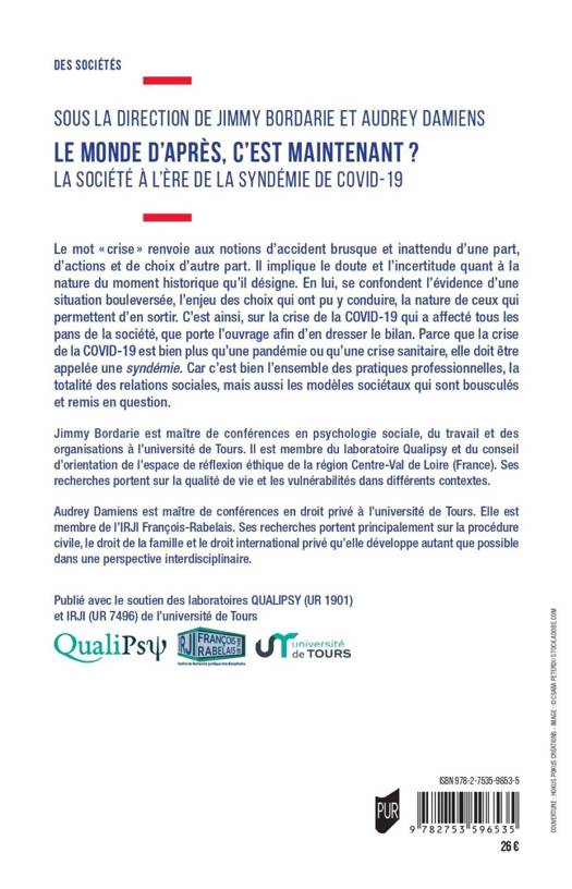 Le mot « crise » renvoie aux notions d’accident brusque et inattendu d’une part, d’actions et de choix d’autre part. Il implique le doute et l’incertitude quant à la nature du moment historique qu’il désigne. En lui, se confondent l’évidence d’une situation bouleversée, l’enjeu des choix qui ont pu y conduire, la nature de ceux qui permettent d’en sortir. C’est ainsi, sur la crise de la COVID-19 qui a affecté tous les pans de la société, que porte l’ouvrage afin d’en dresser le bilan. Parce que la crise de la COVID-19 est bien plus qu’une pandémie ou qu’une crise sanitaire, elle doit être appelée une syndémie. Car c’est bien l’ensemble des pratiques professionnelles, la totalité des relations sociales, mais aussi les modèles sociétaux qui sont bousculés et remis en question.