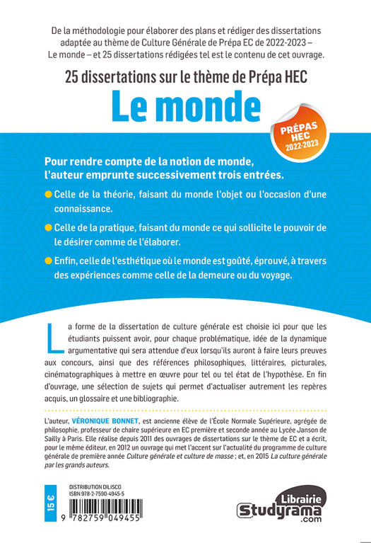 L’ouvrage propose de la méthodologie pour élaborer des plans et rédiger une copie adaptée au thème de culture générale de Prépa HEC 2023 et 25 dissertations corrigées. Chaque dissertation est complétée par des références philosophiques, littéraires, picturales. En fin d’ouvrage une sélection de sujets potentiels permet d’actualiser les repères acquis.