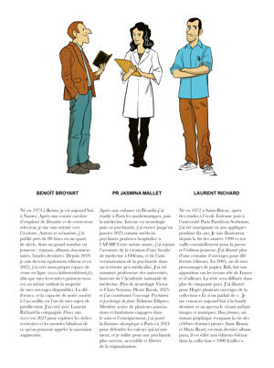 Une exploration lumineuse et sensible de la santé mentale, où une psychiatre, un dessinateur et un écrivain vous invitent à un dialogue profond et décalé sur les troubles psychiques. Entre conversation intime et enquête documentaire, ce roman graphique dessiné par Laurent Richard déjoue les idées reçues sur la psychiatrie. À travers un échange vivant entre Jasmina Mallet, psychiatre spécialiste des neurosciences, et Benoît Broyart, écrivain passionné par les liens entre maladie mentale et création artistique, découvrez une approche à la fois humaine des troubles bipolaires, schizophrénie, autisme : ce livre lève le voile sur ces réalités qui concernent près d'un Français sur cinq. Un parcours initiatique qui mêle histoire de la psychiatrie, témoignages, anecdotes personnelles et réflexions sur notre rapport à la santé mentale.