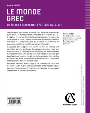 Cet ouvrage a pour but de présenter, sur un mode accessible et synthétique, les mondes grecs du IIe millénaire au IVe siècle av. J.-C.. Il s’agit de revenir sur les inflexions chronologiques majeures de cette période, à savoir l’époque minoenne et mycénienne, la Grèce archaïque et la Grèce classique, qui s’achève sur la montée en puissance macédonienne et les conquêtes d’Alexandre.