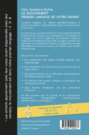 Ce livre propose aux jeunes enfants de 3 à 7 ans un panel d'activités motrices et de musiques pour développer la coordination et le langage. On y trouve également des histoires à mettre en action par les enfants pour les inciter à bouger, à écouter et à apprendre. Ces activités sont fondées sur l'approche corporelle mondialement connue et conçue par l'autrice pour faciliter l'apprentissage.