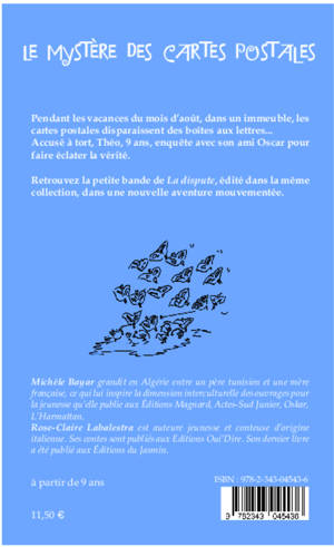 Pendant les vacances du mois d'août, dans un immeuble, les cartes postales disparaissent des boîtes aux lettres... Accusé à tort, Théo, 9 ans, enquête avec son ami Oscar pour faire éclater la vérité. Retrouvez la petite bande de La dispute, édité dans la même collection, dans une nouvelle aventure mouvementée. A partir de 9 ans.