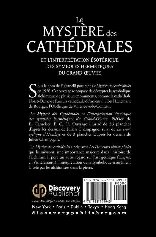 Sous le nom de Fulcanelli parurent Le Mystère des cathédrales en 1926. Cet ouvrage se propose de décrypter la symbolique alchimique de plusieurs monuments, comme la cathédrale Notre-Dame de Paris, la cathédrale d'Amiens, l'Hôtel Lallemant de Bourges, l'Obélisque de Villeneuve-le-Comte...