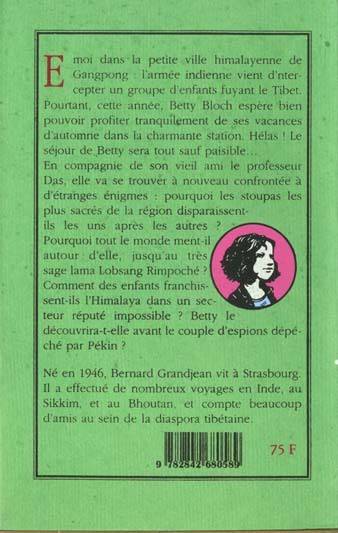 En compagnie de son vieil ami le professeur Das, elle va se trouver à nouveau confrontée à d'étranges énigmes : pourquoi les stoupas les plus sacrés de la région disparaissent-ils les uns après les autres ? Pourquoi tout le monde ment-il autour d'elle, jusqu'au très sage lama Lobsang Rimpoché ? Comment des enfants franchissent-ils l'Himalaya dans un secteur réputé impossible ? Betty le découvrira-t-elle avant le couple d'espions dépéché par Pékin ?