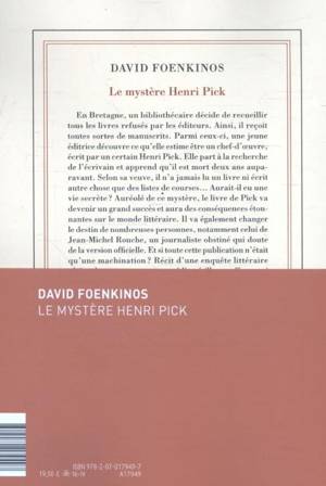 En Bretagne, un bibliothécaire décide de recueillir tous les livres refusés par les éditeurs. Ainsi, il reçoit toutes sortes de manuscrits. Parmi ceux-ci, une jeune éditrice découvre ce qu'elle estime être un chef-d'œuvre, écrit par un certain Henri Pick. Elle part à la recherche de l'écrivain et apprend qu'il est mort deux ans auparavant. Selon sa veuve, il n'a jamais lu un livre ni écrit autre chose que des listes de courses... Aurait-il eu une vie secrète? Auréolé de ce mystère, le livre de Pick va devenir un grand succès et aura des conséquences étonnantes sur le monde littéraire. Il va également changer le destin de nombreuses personnes, notamment celui de Jean-Michel Rouche, un journaliste obstiné qui doute de la version officielle. Et si toute cette publication n'était qu'une machination? Récit d'une enquête littéraire pleine de suspense, cette comédie pétillante offre aussi la preuve qu'un roman peut bouleverser l'existence de ses lecteurs.