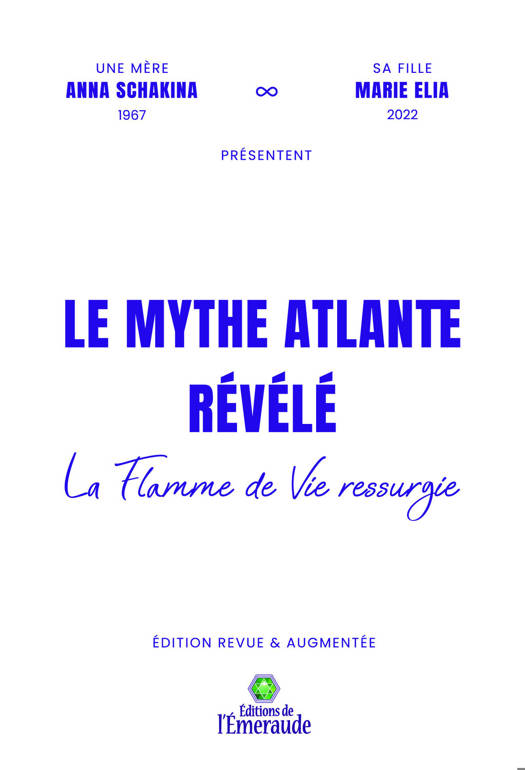 Un mythe venu du fond des âges nous éclaire sur notre présent et nous prépare à notre futur. À la fin des années soixante, la médium Anna Schakina revécut l’histoire de l’Atlantide – son apogée et sa chute – en pénétrant les « archives éthériques » où s’inscrit la mémoire planétaire. Alors que, à nouveau, l’heure du choix sonne à l’Horloge cosmique, ce récit nous fait prendre conscience de notre responsabilité et nous donne des clés pour contribuer à œuvrer pour un nouvel Age d’Or. Marie Elia, connue pour ses ouvrages sur les Lettres hébraïques, est la fille d’Anna Schakina. Dans la deuxième partie de ce livre, elle donne la parole aux différents « courants de vie atlantes », les acteurs de cette histoire, qui accompagnent l’humanité depuis des millénaires et nous tendent la main aujourd’hui. « L’Atlantide doit renaître, c’est-à-dire que les grands secrets qu’elle possédait doivent surgir de l’eau de l’oubli pour être révélés... Pour cela il faut que revienne l’initié, l’être en qui s’est réalisée l’union de la science, de la connaissance et de l’amour, et qui, en se connaissant lui-même, connaît l’univers et les Dieux... ».