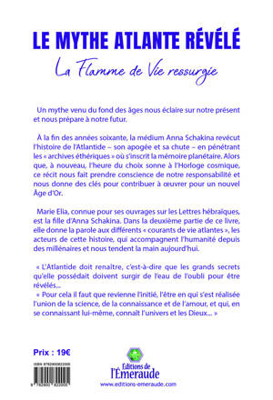 Un mythe venu du fond des âges nous éclaire sur notre présent et nous prépare à notre futur. À la fin des années soixante, la médium Anna Schakina revécut l’histoire de l’Atlantide – son apogée et sa chute – en pénétrant les « archives éthériques » où s’inscrit la mémoire planétaire. Alors que, à nouveau, l’heure du choix sonne à l’Horloge cosmique, ce récit nous fait prendre conscience de notre responsabilité et nous donne des clés pour contribuer à œuvrer pour un nouvel Age d’Or. Marie Elia, connue pour ses ouvrages sur les Lettres hébraïques, est la fille d’Anna Schakina. Dans la deuxième partie de ce livre, elle donne la parole aux différents « courants de vie atlantes », les acteurs de cette histoire, qui accompagnent l’humanité depuis des millénaires et nous tendent la main aujourd’hui. « L’Atlantide doit renaître, c’est-à-dire que les grands secrets qu’elle possédait doivent surgir de l’eau de l’oubli pour être révélés... Pour cela il faut que revienne l’initié, l’être en qui s’est réalisée l’union de la science, de la connaissance et de l’amour, et qui, en se connaissant lui-même, connaît l’univers et les Dieux... ».