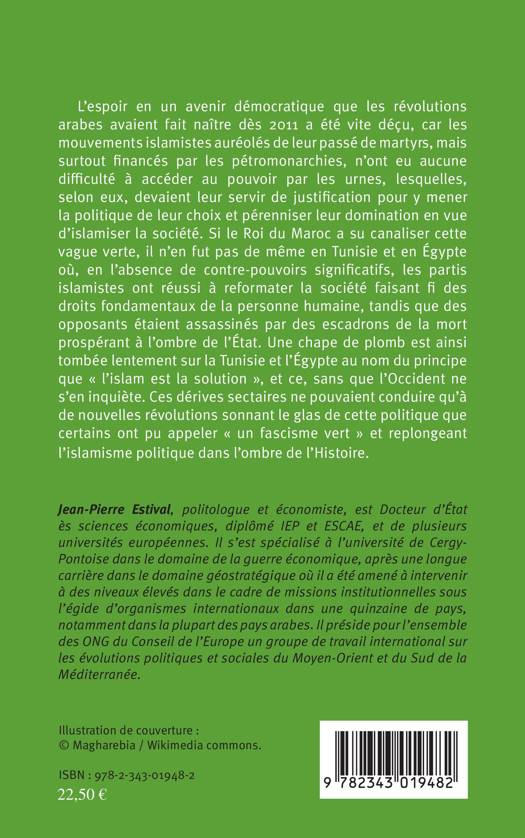 L'espoir en un avenir démocratique que les révolutions arabes ont fait naître dès 2011 a été vite déçu. Les mouvements islamistes, auréolés de leur passé et financés par les pétromonarchies, n'ont eu aucune difficulté à accéder au pouvoir par les urnes. Si le Roi du Maroc a su canaliser cette vague verte, en revanche une chape de plomb est tombée sur la Tunisie et l'Egypte au nom du principe que "l'islam est la solution". Ces dérives sectaires ne peuvent conduire qu'à de nouvelles révolutions.