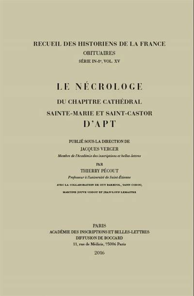 Avec ce nouveau volume, est procuree l'edition d'un manuscrit exceptionnel demeure inedit jusqu'a ce jour, celui d'un martyrologe du XIe siecle, precede de la Passion de saint Vincent, qui fut utilise comme necrologe. Il s'agit d'un document d'autant plus precieux que la province ecclesiastique d'Aix apparaOEt comme l'une des plus pauvres en documents necrologiques medievaux, puisqu'elle n'est representee que par 30 numeros dans le Repertoire des documents necrologiques francais. L'ouvrage est precede d'une importante introduction presentant le manuscrit, son histoire et son contenu, mais aussi l'eglise Sainte-Marie et Saint-Castor d'Apt ou il fut en usage. Avec ce volume, les historiens de la Provence, et des traditions commemoratives, disposent desormais de l'ensemble des necrologes et obituaires de la province ecclesiastique d'Aix.