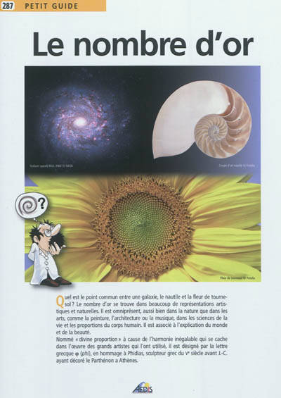 Quel est le point commun entre une galaxie, le nautile et la fleur de tournesol? Le nombre d'or se trouve dans beaucoup de représentations artistiques et naturelles? Il est associé à l'explication du monde et de la beauté.