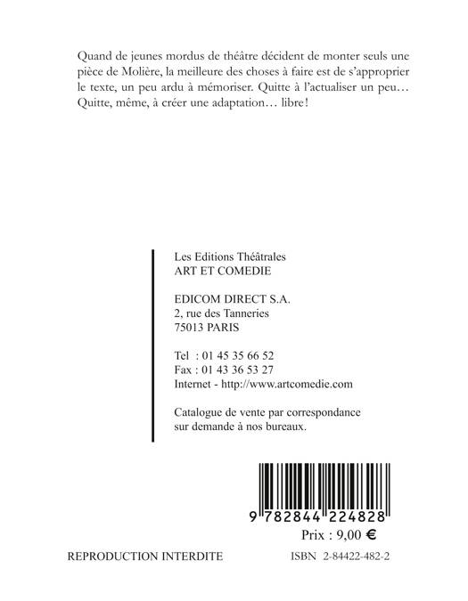 Quand de jeunes mordus de théâtre décident de monter seuls une pièce de Molière, la meilleure des choses à faire est de s'approprier le texte, un peu ardu à mémoriser. Quitte à l'actualiser un peu... Quitte, même, à créer une adaptation... libre !