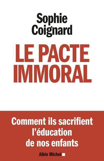 Deux grands lycées parisiens qui se sont déconnectés du système informatique du ministère et ont mis en place des modes d'admission parallèles. Des ministres (et un président) qui annoncent des réformes mais n'arrivent pas à les faire appliquer.Des enseignants qui font faire des dictées en cachette.Le CAPES que l'on donne à des candidats qui n'ont pas eu la moyenne et qu'on lâche ensuite dans des classes difficiles.Une pédagogie « nouvelle » où l'orthographe n'est plus « une fatalité » mais « une matière à discussion ».Après la Nomenklatura, l'omerta, la franc-maçonnerie, entre autres sujets sensibles, Sophie Coignard met à nu l'Education nationale. Ses ministres, ses idéologues, ses syndicats, tous ceux qui depuis 25 ans mènent à la ruine l'école.Le plus scandaleux ? Ils agissent en toute impunité.À l'origine de cet immense gâchis, un Pacte Immoral entre les élites qui prétendent nous gouverner et les apparatchiks qui sacrifient par pur cynisme nos enfants.Ceci n'est pas un livre sur l'éducation. En tout cas pas seulement. C'est d'abord un document féroce et un récit effarant sur l'hypocrisie et la lâcheté du pouvoir.