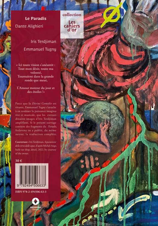 Parce que la Divine Comédie est vivante, Emmanuel Tugny s'attache à en restituer la puissance imaginative et musicale, que les extraordinaires images d'Iris Terdjiman amplifient. Si le présent ouvrage contient des fragments du Paradis, Ardavena en a publié par ailleurs la traduction complète.