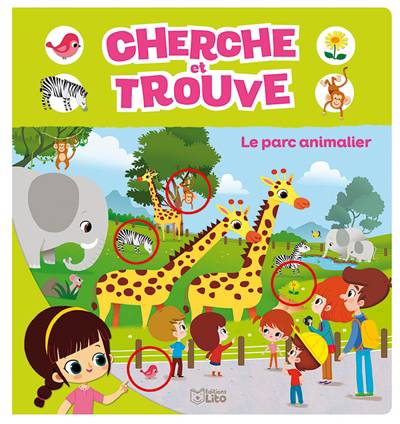 Amuse-toi à retrouver dans les cinq grandes images les objets et animaux du parc animalier.