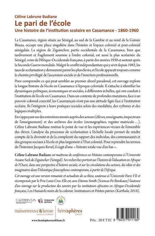 La Casamance occupe une place singulière dans l’histoire et l’espace colonial et post-colonial sénégalais. La région de Ziguinchor, partie occidentale de la Casamance, bien que tardivement et fragilement soumise à l’ordre colonial, est aussi la plus scolarisée du Sénégal, voire de l’Afrique-Occidentale française, et le demeure aujourd’hui. Pour comprendre cet apparent paradoxe, l’ouvrage s’attache à identifier les dynamiques politiques, économiques et sociales qui ont conduit à l’institution de l’école en Casamance et, face à un pouvoir colonial coercitif, les multiples voies empruntées par les Casamançais pour l’intégrer à leurs pratiques sociales. En s’appuyant sur de nombreux entretiens, il restitue le point de vue des élèves, et rend compte de la diversité et de la complexité du rapport à l’école, et plus largement à l’État colonial, des individus, des communautés et des groupes sociaux. Pour reprendre les termes de Jacques Revel, voici une « histoire totale vue d’en bas ».