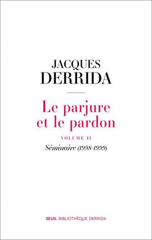 Se déplaçant du contexte européen d’après-guerre à l’Afrique du Sud et aux États-Unis, la dimension politique du pardon prend, au cours de cette seconde année du séminaire, un relief particulier alors que Jacques Derrida analyse la théâtralité des scènes de repentance en faisant comparaître successivement Hegel, Nelson Mandela, Desmond Tutu et Bill Clinton – sans oublier la portée singulière de la parole des femmes.