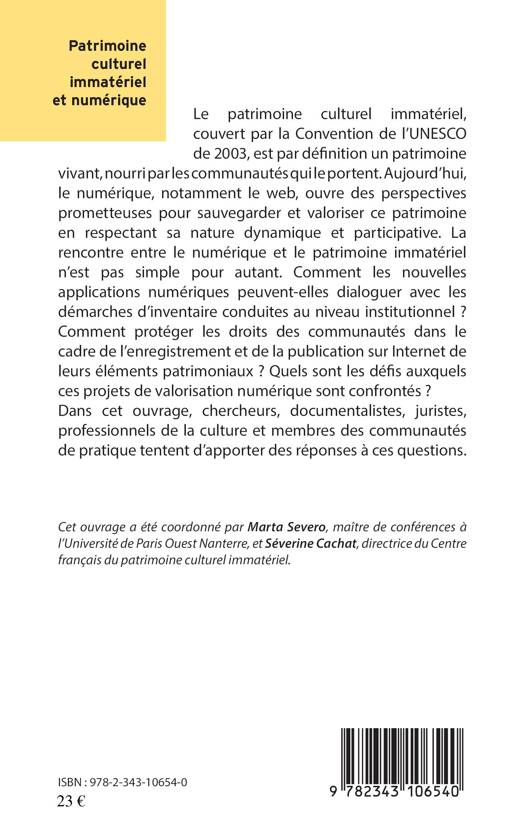 Le patrimoine culturel immatériel, couvert par la Convention de l'UNESCO de 2003, est par définition un patrimoine vivant, nourri par les communautés qui le portent. Aujourd'hui, le numérique, notamment le web, ouvre des perspectives prometteuses pour sauvegarder et valoriser ce patrimoine. Comment les nouvelles applications numériques peuvent-elles dialoguer avec les démarches d'inventaire conduites au niveau institutionnel ? Comment protéger les droits des communautés dans le cadre de l'enregistrement et de la publication sur Internet de leurs éléments patrimoniaux ?