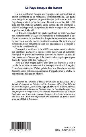 Le nationalisme basque en Espagne est aujourd'hui un acteur incontesté de la monarchie constitutionnelle. En France, ses partis semblent en rester au stade des balbutiements. Pourquoi y a-t-il une telle différence entre deux territoires qui semblent partager le même socle historique et culturel . Pourquoi les partis nationalistes basques en France, ne sont-ils pas parvenus à s'émanciper à la manière de ce qui a pu se produire de l'autre côté des Pyrénées ? Plus que leur propre échec, peut-être faut-il plutôt y voir le succès du modèle de construction étatique et national français ?