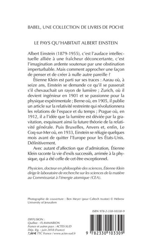 Étienne Klein est parti sur ses traces : Aarau où, à seize ans, Einstein se demande ce qu'il se passerait s'il chevauchait un rayon de lumière ; Zurich, où il devient ingénieur en 1901 et se passionne pour la physique expérimentale ; Berne où, en 1905, il publie un article sur la relativité restreinte qui révolutionnera les relations de l'espace et du temps ; Prague où, en 1912, il a l'idée que la lumière est déviée par la gravitation, esquissant ainsi la future théorie de la relativité générale. Puis Bruxelles, Anvers et, enfin, Le Coq-sur-Mer où, en 1933, Einstein se réfugie quelques mois avant de quitter l'Europe pour les États-Unis. Définitivement.