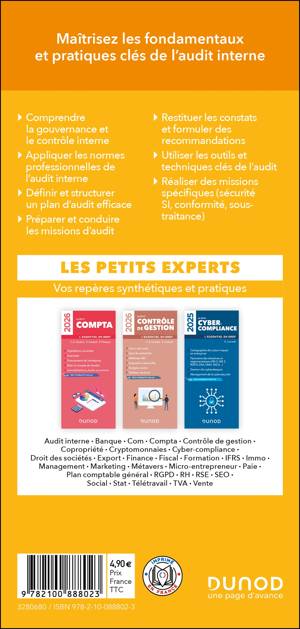 En 48 pages et 16 fiches pratiques, Le petit Audit interne fournit toutes les notions indispensables pour appréhender les réglementations et pratiques en vigueur en matière d’audit interne. Cet ouvrage donne ainsi les repères utiles pour appréhender les pratiques d’audit interne :