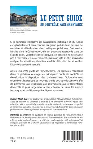 Si la fonction législative de l'Assemblée nationale et du Sénat est généralement bien connue du grand public, leur mission de contrôle et d'évaluation des politiques publiques l'est moins. Inscrite dans la Constitution, elle est pourtant essentielle dans un État de droit. Véritable contre-pouvoir, ce contrôle ne se résume pas à renverser le Gouvernement, mais consiste le plus souvent à analyser les situations, identifier les difficultés, discuter et vérifier l'activité gouvernementale. Après leur Petit guide de l'amendement, les auteures recensent dans ce précieux ouvrage les principaux outils de contrôle et d'évaluation à disposition des parlementaires. Volontairement tourné vers la pratique, ce nouveau guide décrypte le contrôle afin de permettre aux étudiants, aux journalistes, aux représentants d'intérêts et plus largement à tout citoyen de saisir les enjeux techniques et politiques qu'implique ce pouvoir.