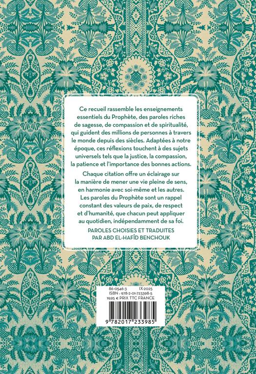Ce recueil rassemble les enseignements essentiels du Prophète Mohammed, des paroles riches de sagesse, de compassion et de spiritualité, qui guident des millions de personnes à travers le monde depuis des siècles. Adaptées à notre époque, ces réflexions touchent à des sujets universels tels que la justice, la compassion, la patience, et l'importance des bonnes actions.
