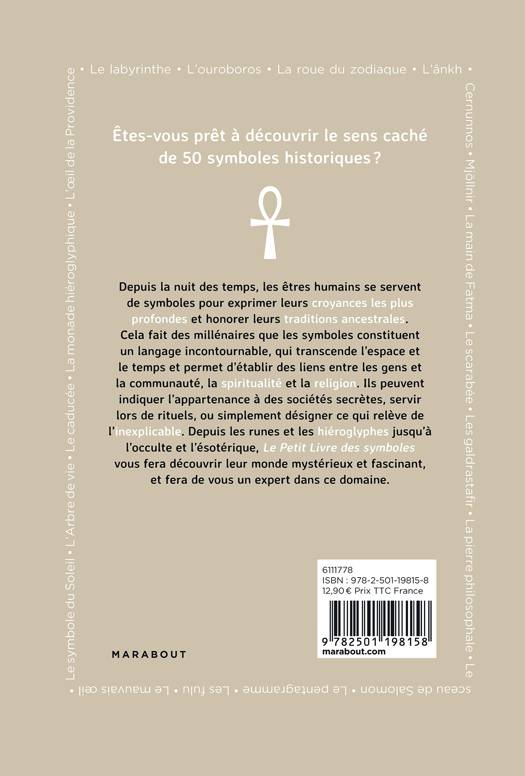 Ankh, croix celtique, mandala, pentagramme ou œil d’Horus… depuis toujours, les hommes utilisent des symboles pour transmettre leurs croyances et préserver leurs traditions. Le Petit Livre des symboles vous invite à explorer ces signes fascinants et leur portée à travers l’Histoire.