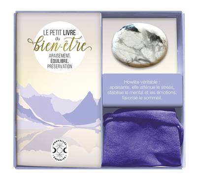 Découvrez le pouvoir des pierres ! Connues depuis des temps anciens, les pierres possèdent des vertus uniques pour la santé et le bien-être. Dans ce coffret, découvrez celles de la howlite et recevez ses énergies positives pour préserver votre équilibre intérieur. 1 véritable howlite avec son pochon en velours : - ses vertus : apaisante, elle sera votre alliée antistress et vous aidera à cultiver le calme en toutes circonstances. - ses utilisations : à porter tout simplement sur soi, à placer dans un endroit clé (chambre, bureau…), à laisser posée sur un chakra ou à inclure dans une séance de méditation… 1 petit livre avec : - des conseils pour utiliser votre pierre, l’entretenir et la recharger ; - des citations inspirantes et des petits exercices de yoga et de méditation pour vous accompagner à la recherche du bien-être.