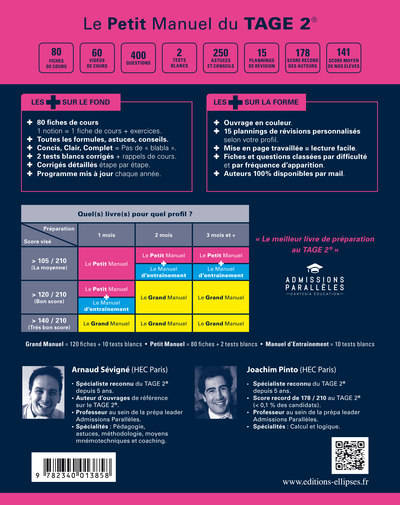 - Le Manuel d’ENTRAINEMENT du TAGE 2 : 10 tests blancs.